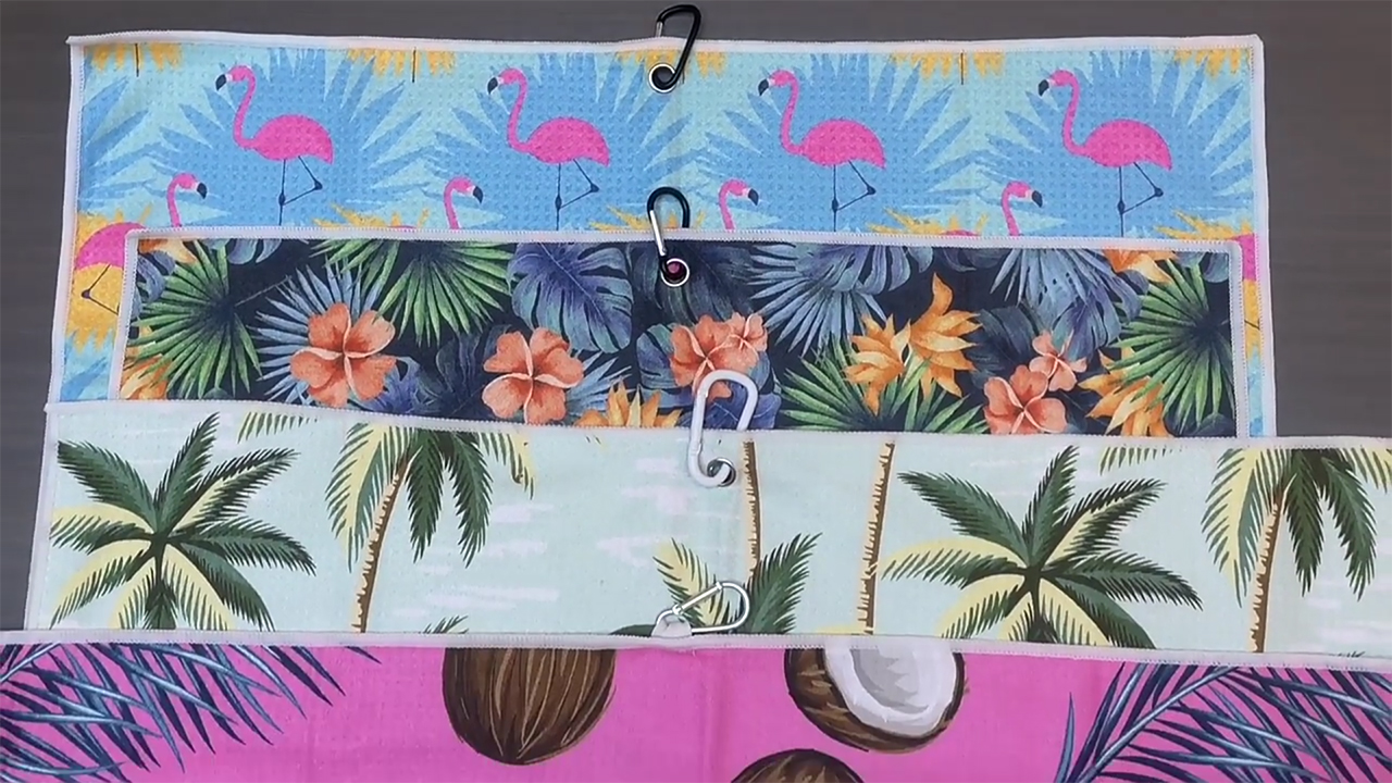 পোর্টেবল পলিয়েস্টার সাবলিমেটেড মাইক্রোফাইবার ওয়াফল বুনা কাস্টম প্রিন্ট গল্ফ তোয়ালে